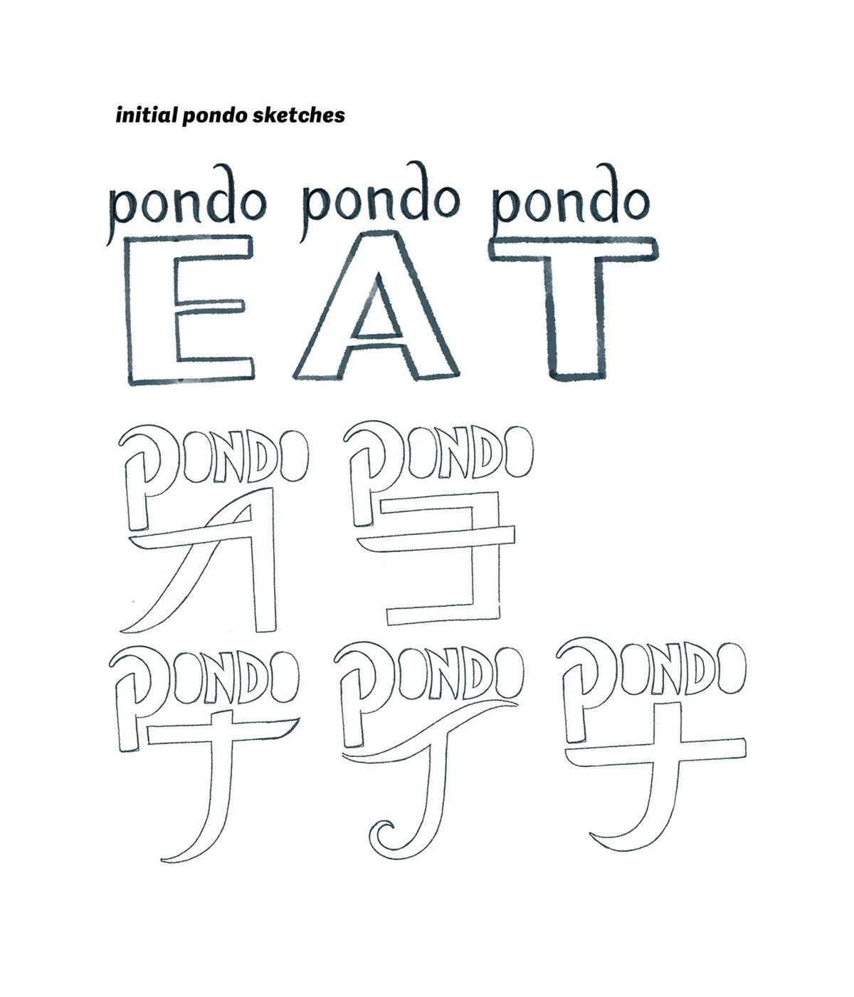 The client initially came to me for work that was both unique and clean, and spoke to the brand’s image and target demographic better. From the sketches above, I was able to hand-render a type-based logo for each current and prospective product line (as seen below)