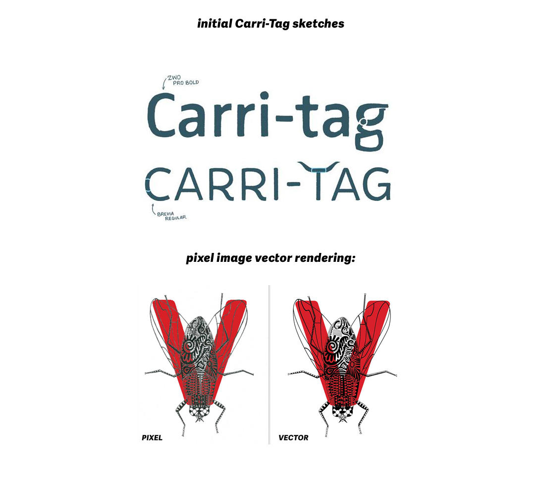 Conceived of novel concepts, hand-vectorized letter design (client-provided). Matched logo designs between brands, Designed product tags that were visually connected, but more streamlined and featured a more legible copy-space.